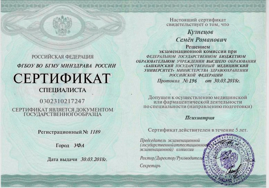 Психиатр стаж 11 лет